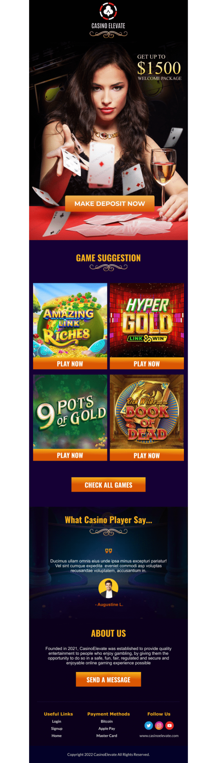 Casino Elevate is a fresh gambling platform established in 2021. Its distinctive feature is the numerous available bonuses, which are regularly updated.
