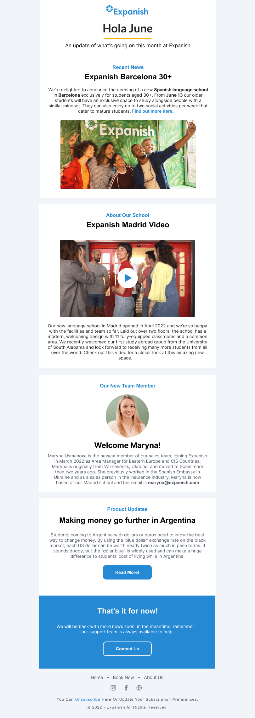 Expanish was founded with the express purpose of creating an understanding and greater awareness between cultures. Our schools work as an entryway to Spain and Latin America, where we are able to create connections and experiences for our students that expand their mind.